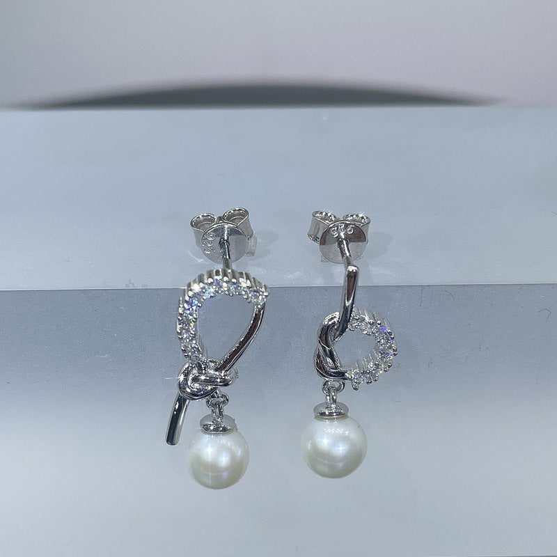 925 Sterling Silver Asymmetric Earrings 7mm Freshwater Pearl