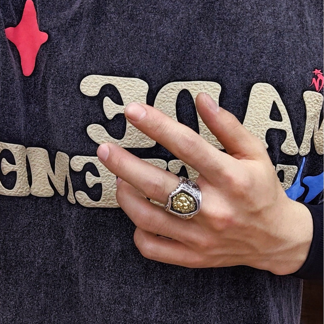 925 Sterling Silver Domineering Lion Open Ring