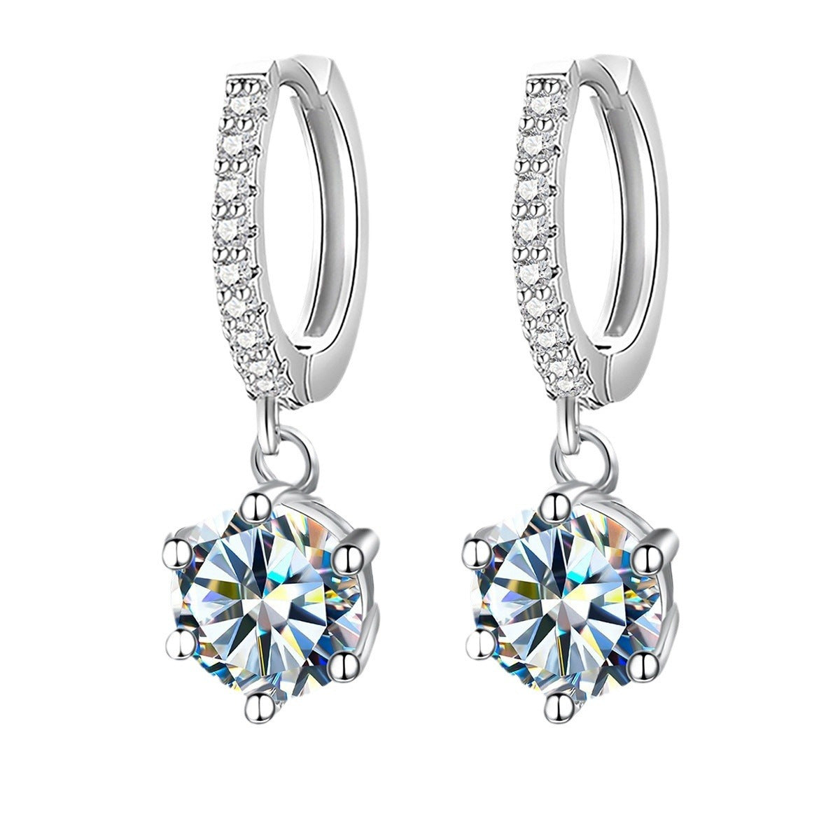 925 Sterling Silver Eardrops Classic Six-claw Moissanite Women