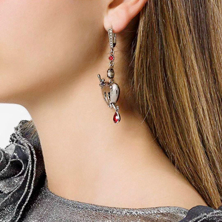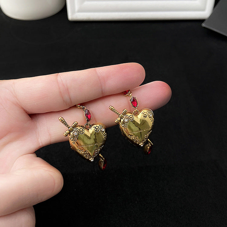 • Bohemian Style Maijia Zircon Inlaid Diamond Stone Through Heart Vintage Earrings