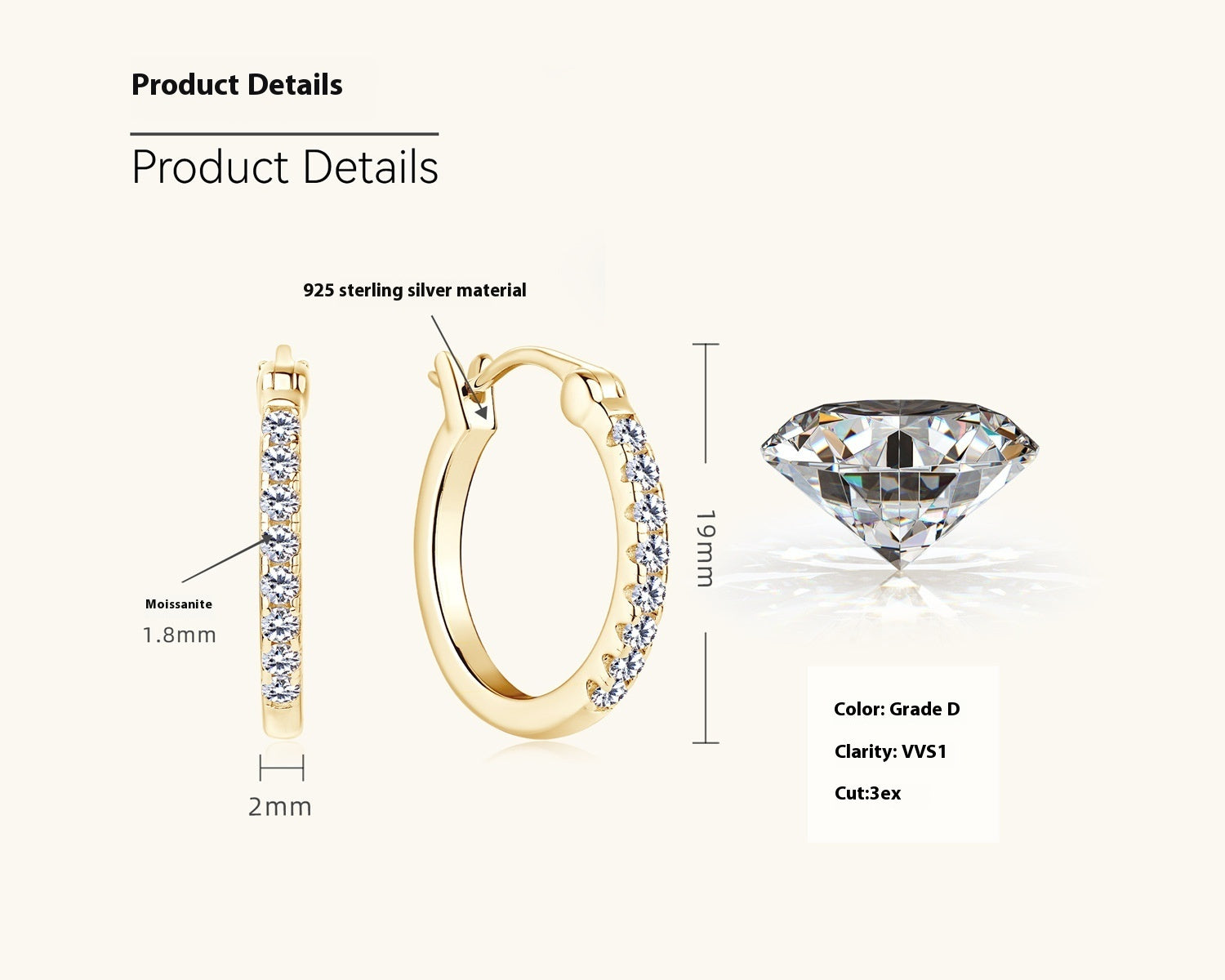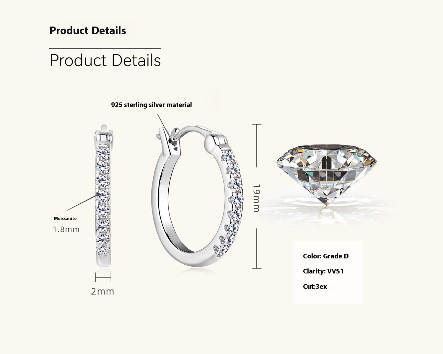 Fashion Moissanite Ear Ring Female S925 Silver Diamond Earrings