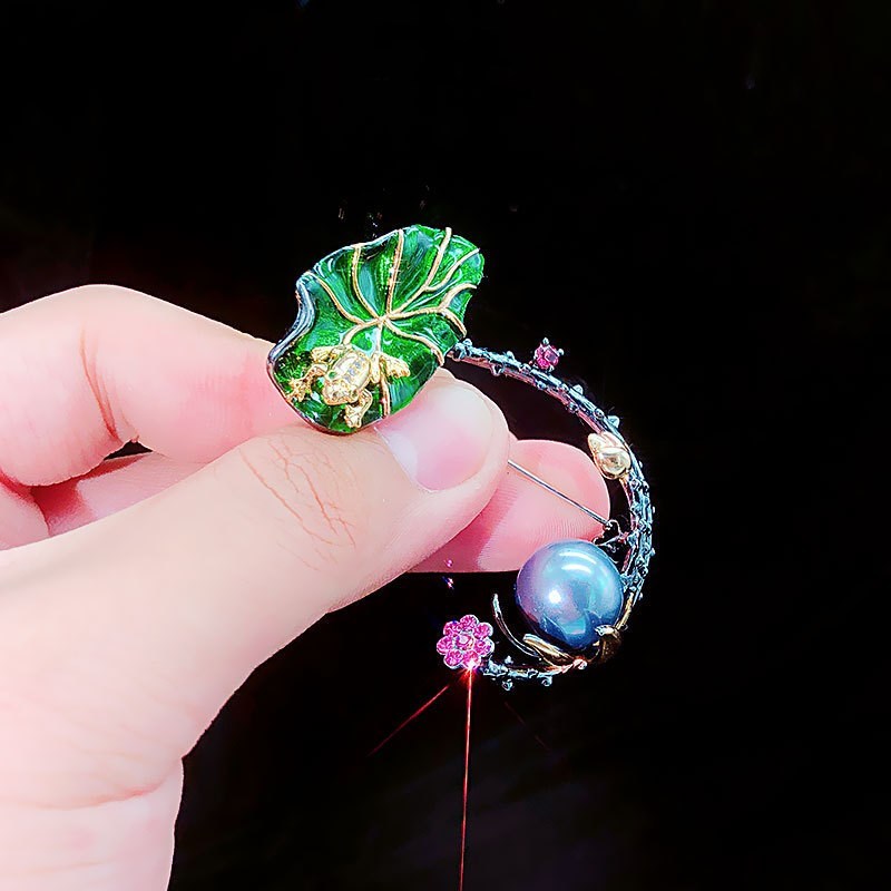 Lotus Pond Brooch, Two Accessory Chain Pendants