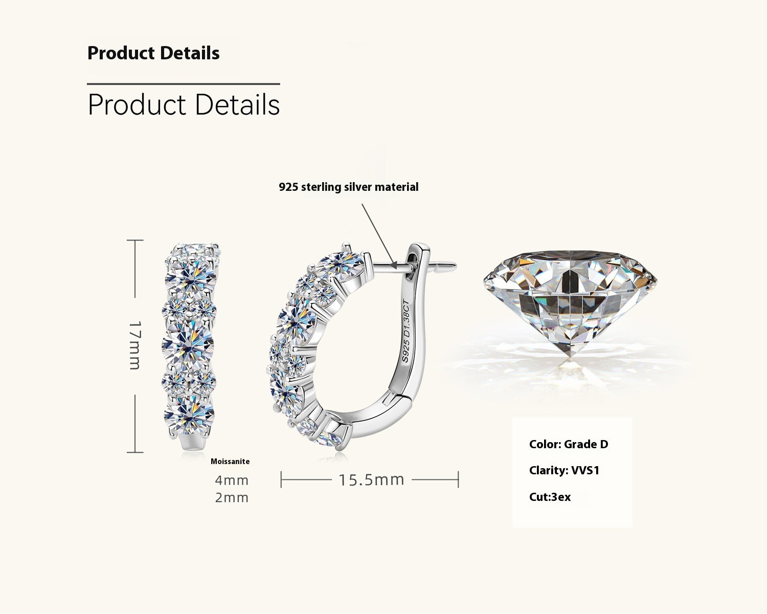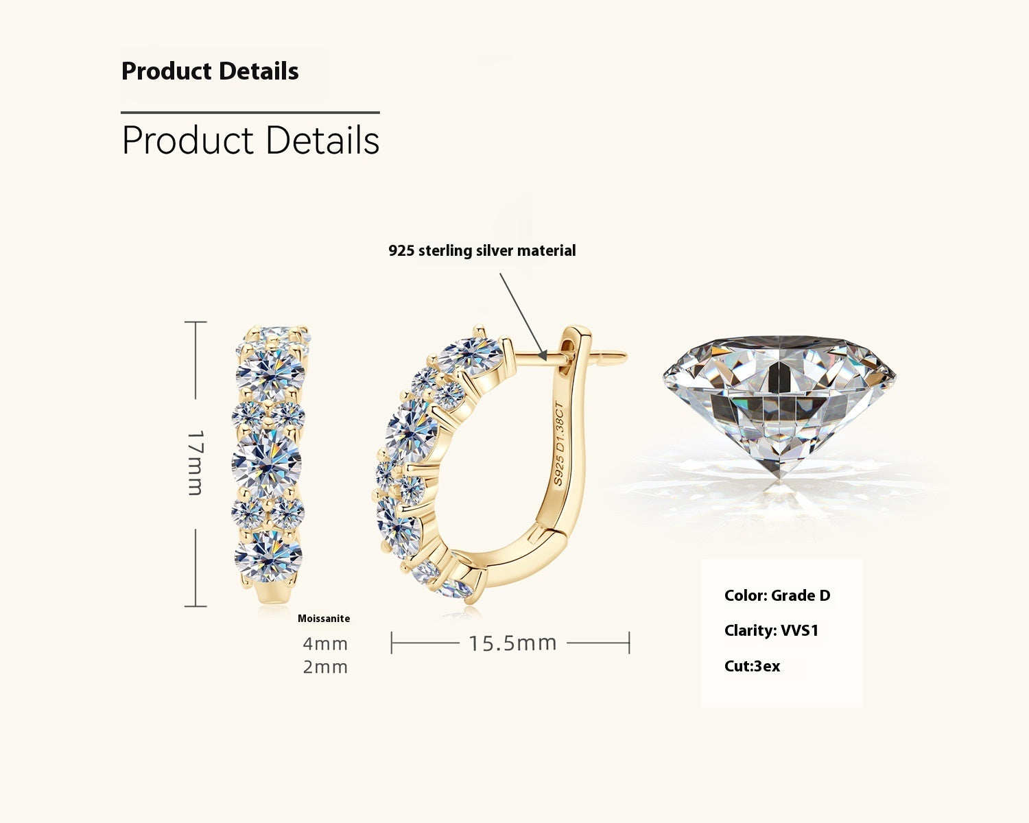 Moissanite Earring Eardrop Girls' High-grade Ear Clip