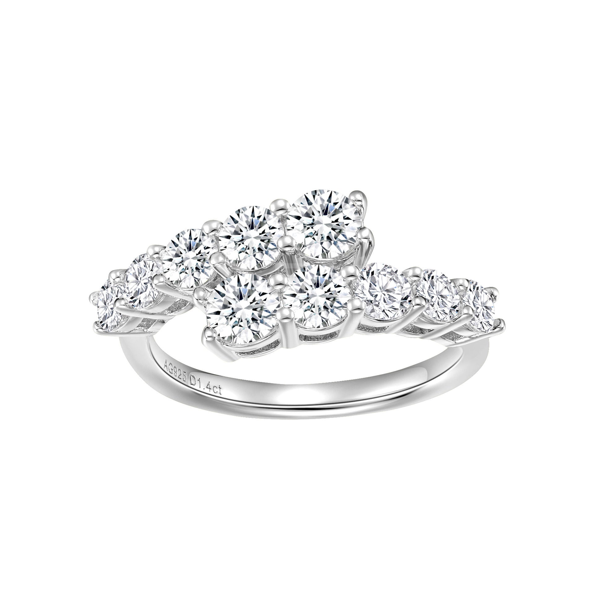 New 925 Silver Double-layer Round Diamond Simulation Diamond Open Row Ring
