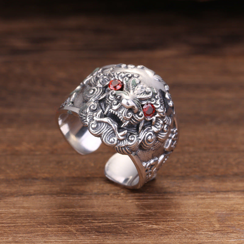 • S925 Sterling Silver Jeweleries Retro Personalized Thai Silver Women's And Women's Open Ring