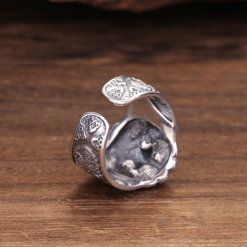 S925 Sterling Silver Jeweleries Retro Personalized Thai Silver Women's And Women's Open Ring