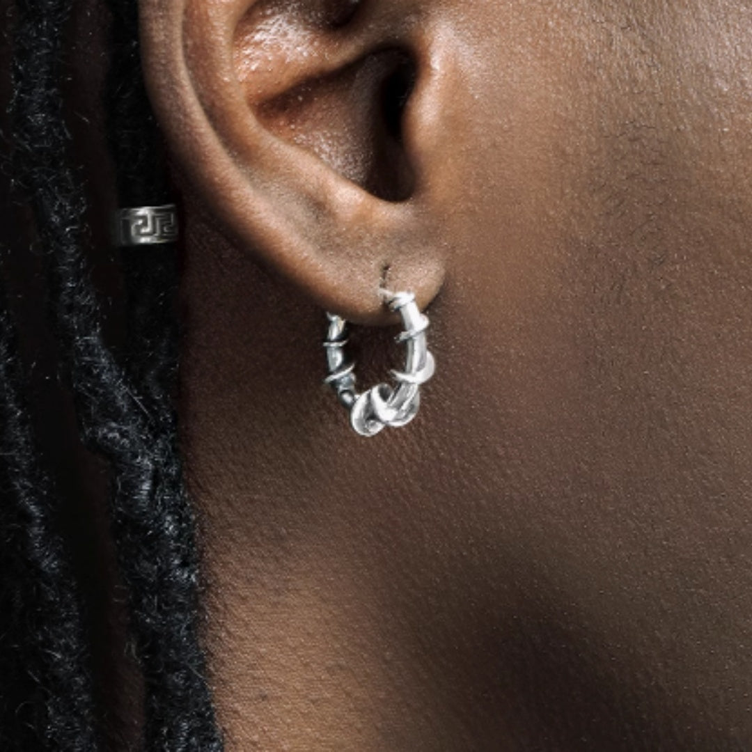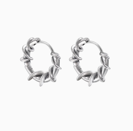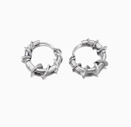• S925 Sterling Silver Thorn Winding Earrings Men's Hip Hop Fashion