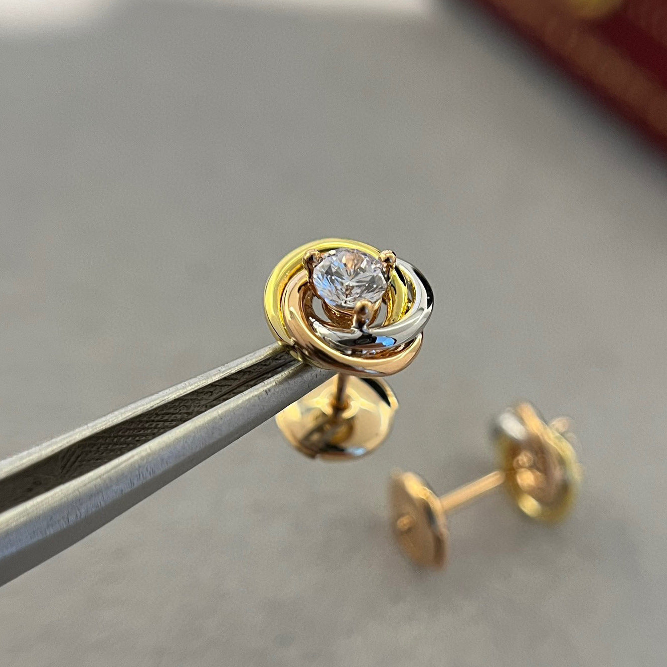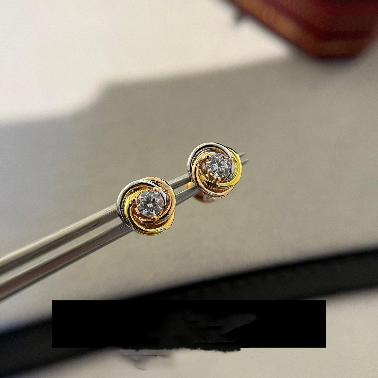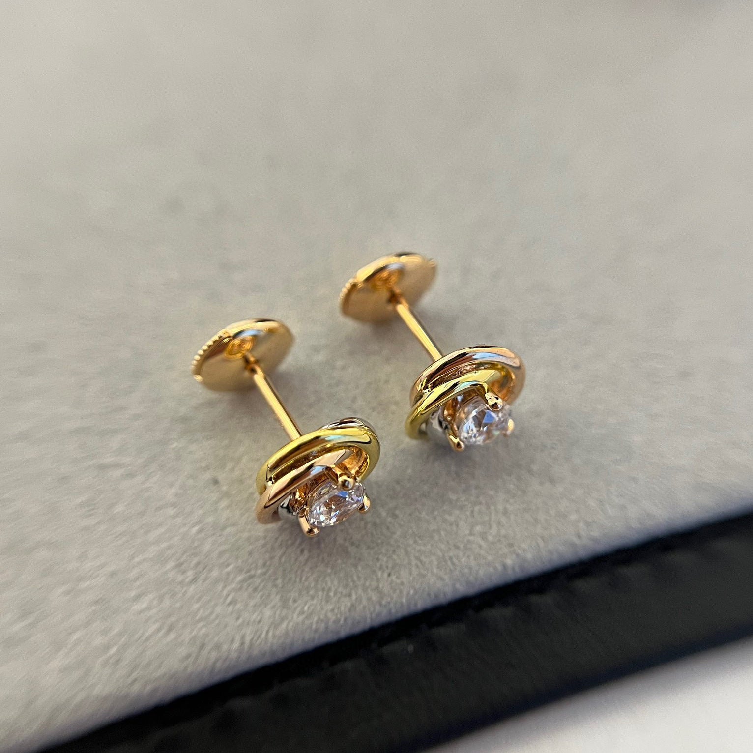 Single Diamond Three-ring Stud Earrings Carved Craft