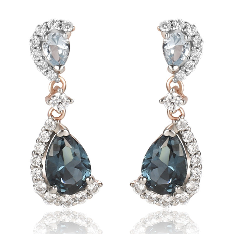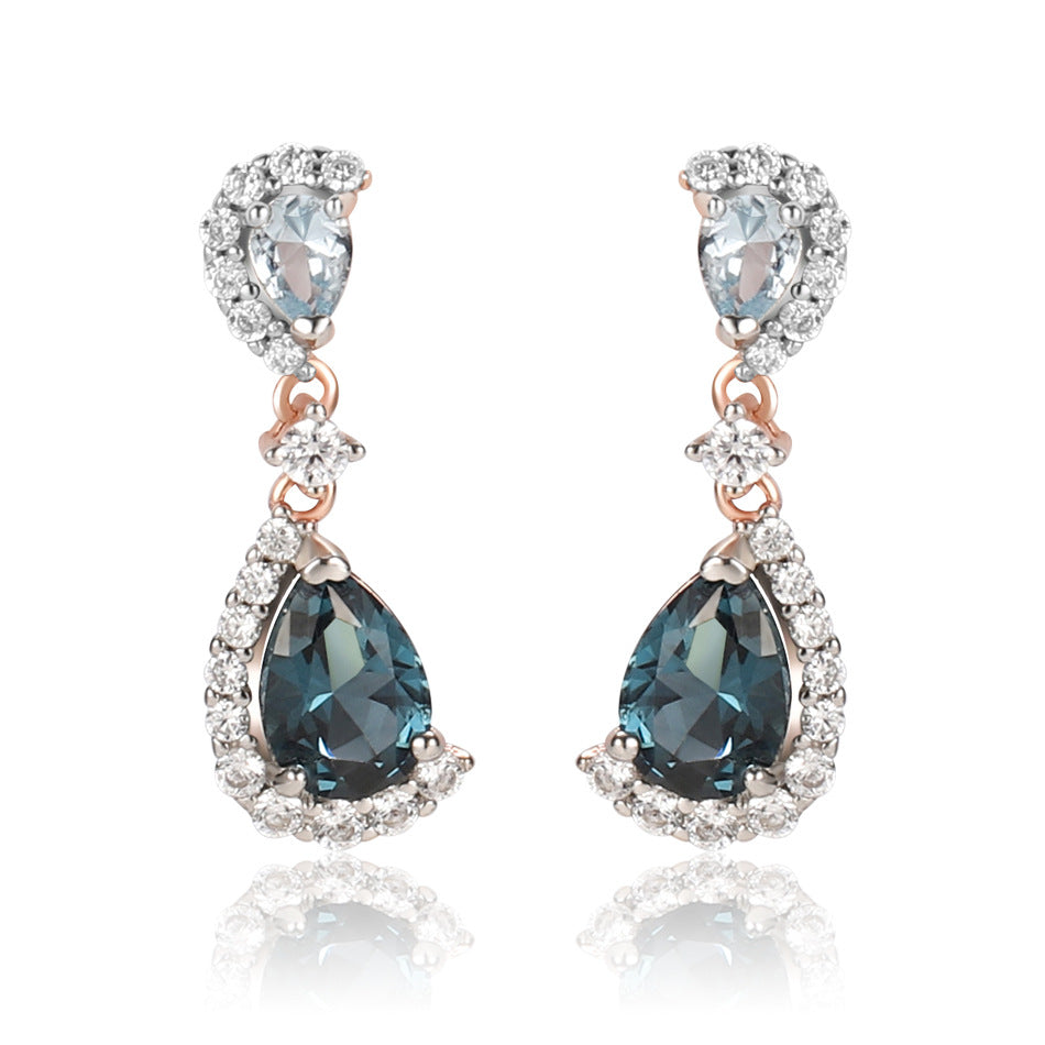 Sky London Blue Rose Gold Color Separation Electroplated Stud Earrings