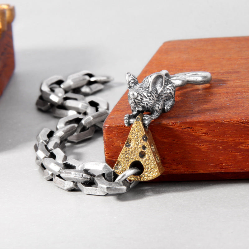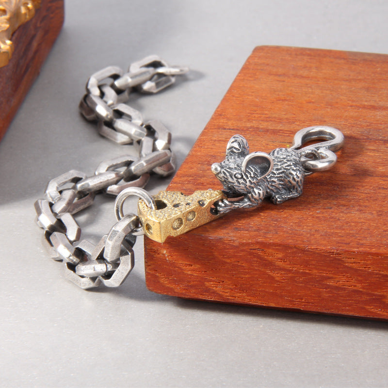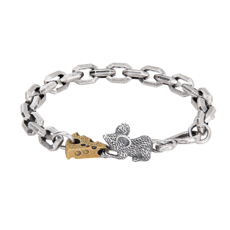 Sterling Silver Vintage Distressed Mouse Bracelet