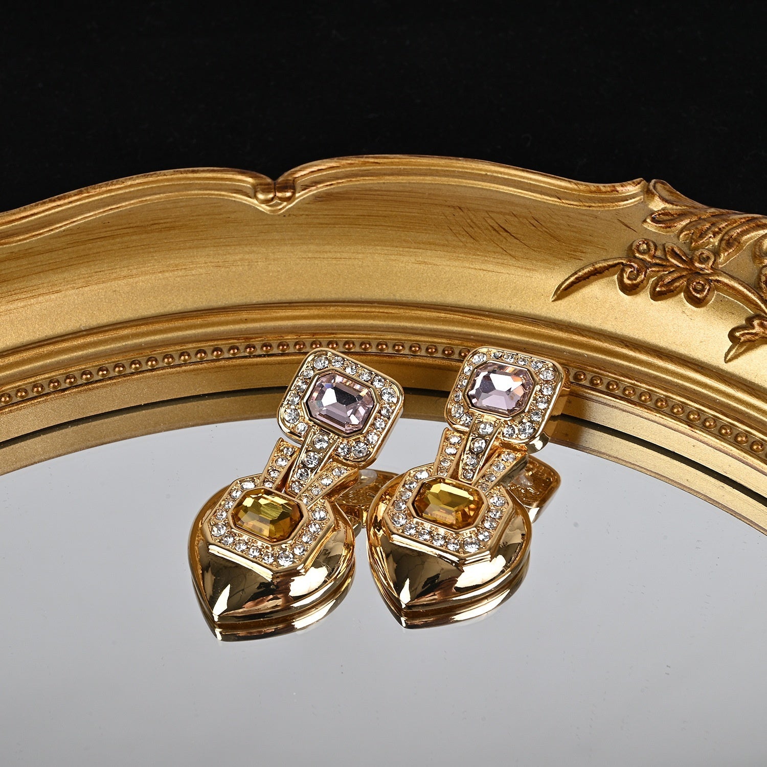 Vintage Court Style Geometric Hollow Necklace Earrings Suit