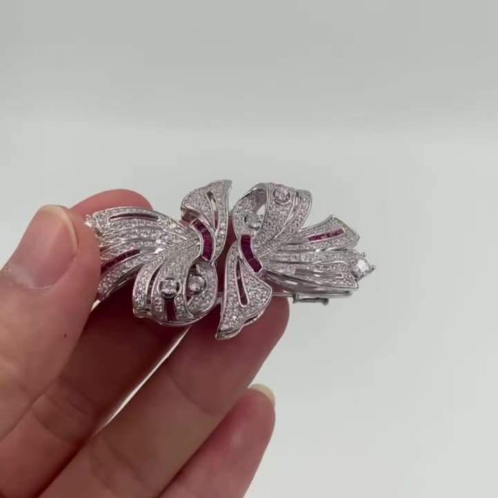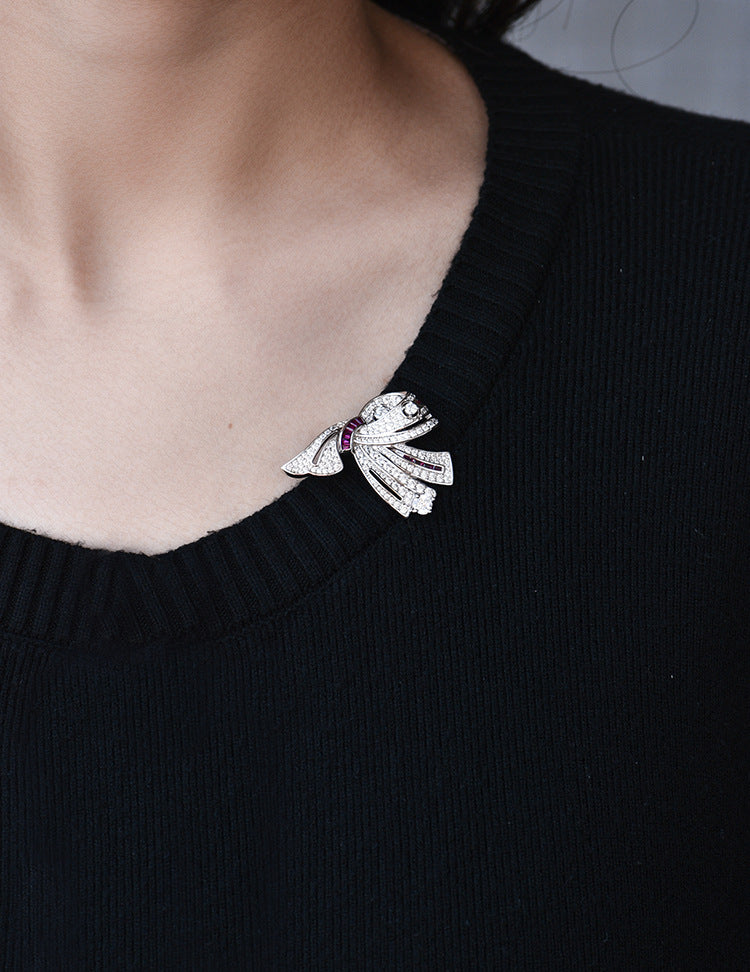 Women's S925 Sterling Silver Double Clip Bow Brooch